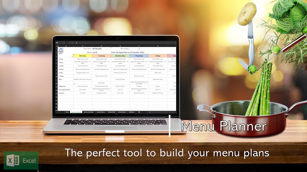 Preparing food menus for restaurants, canteens, hotels, and special events is a challenging, time-consuming, and error-prone task, which can be facilitated using this Excel workbook.